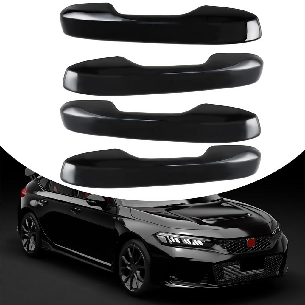HIMARKLIF Exterior Door Handle No Tape Piano Black Mirror Finish with Smart Full Compatible with Honda Civic and New and Set Covers, Required, Holes,