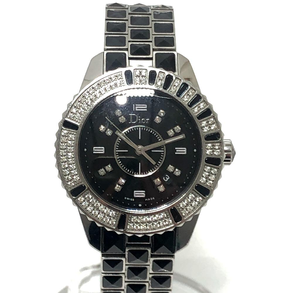 NAME: Dior Crystal Diamond Bezel 16P Quartz Date Watch Round Face Wristwatch
