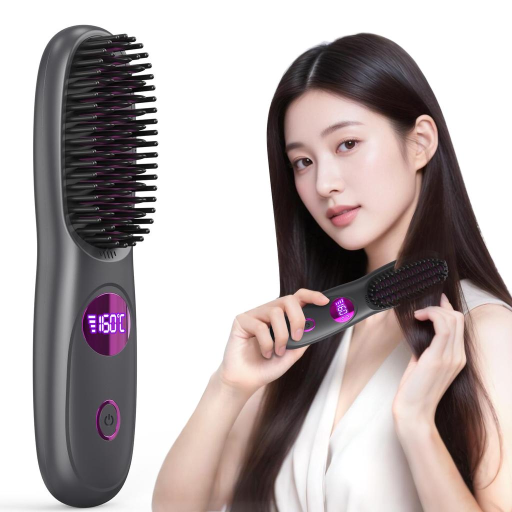 【Professional-Grade Styling in One Device】Three precise temperature settings—160℃ (fine/soft hair), 180℃ (damaged hair), and 200℃ (coarse hair)—guide all hair types to their ideal state, providing salon-quality styling for all hair types and styles. This revolutionary 2-way brush iron allows you to achieve salon-quality styles—straight, curly, and voluminous—with just one device. Enjoy easy, meticulous beauty at home, even during busy mornings. The unisex cordless straight brush is also ideal for men's nape and sideburns, with precise temperature control for professional-level control of bedhead and frizz. The compact head quickly shapes fine lines, maintaining a clean and polished look essential for business settings.