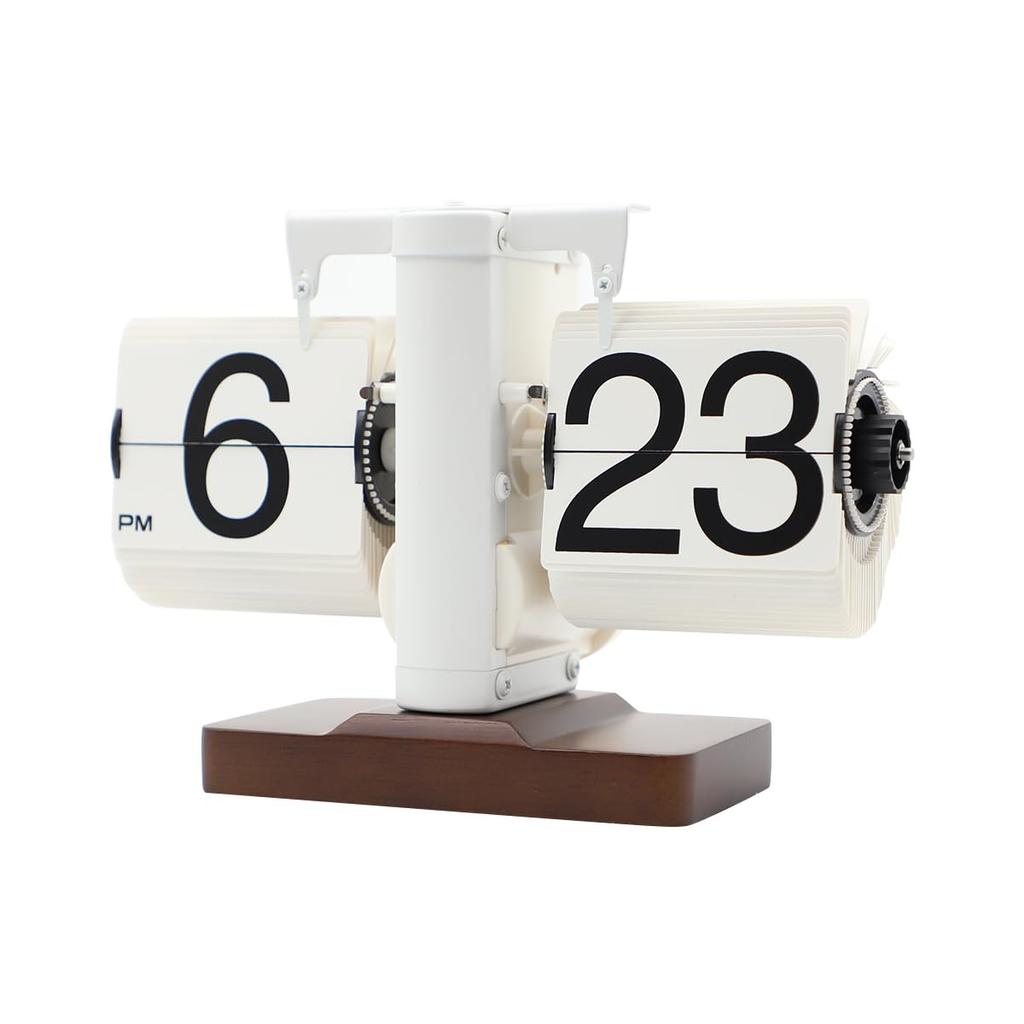 LAEYI Flip Clock, Wooden Desk Clock, Retro Style, Stylish, Gift for Boyfriend/Friend, Gift for Desk, White