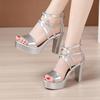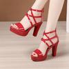 Big Size 32-43 Block Heel Platform Sandals Women Wedding Shoes Summer High Heels Gladiator Sandals Patent Leather Sandals