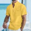 Men's Stand Up Collar Short Sleeved T-shirt Male Cotton and Linen Casual Top Comfortable Breathable Casual Henry's Shirt