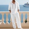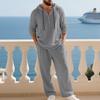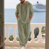 Cross-border Autumn Linen Men's Casual Suit Loose Hooded Henley Shirt Long Sleeve Pants Suit