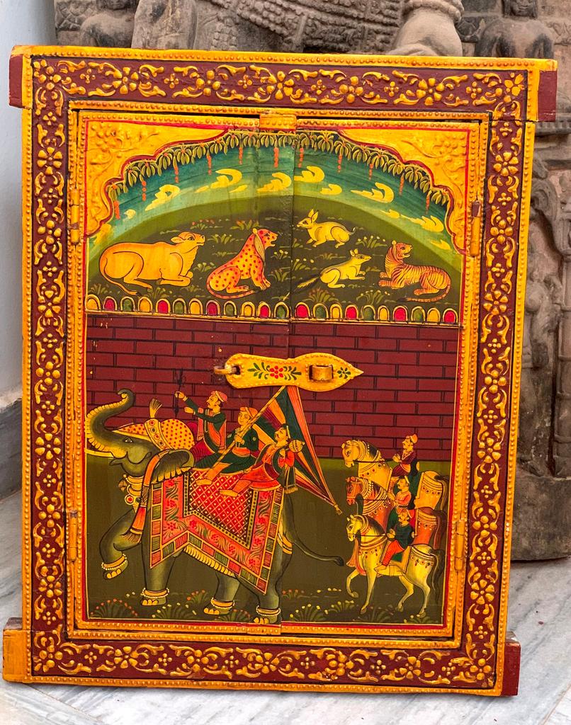This is a handmade old antique wooden painted window beautiful royal procession made by the able craftsman of India. Each piece is handmade and it takes a lot of time and effort to make one piece.