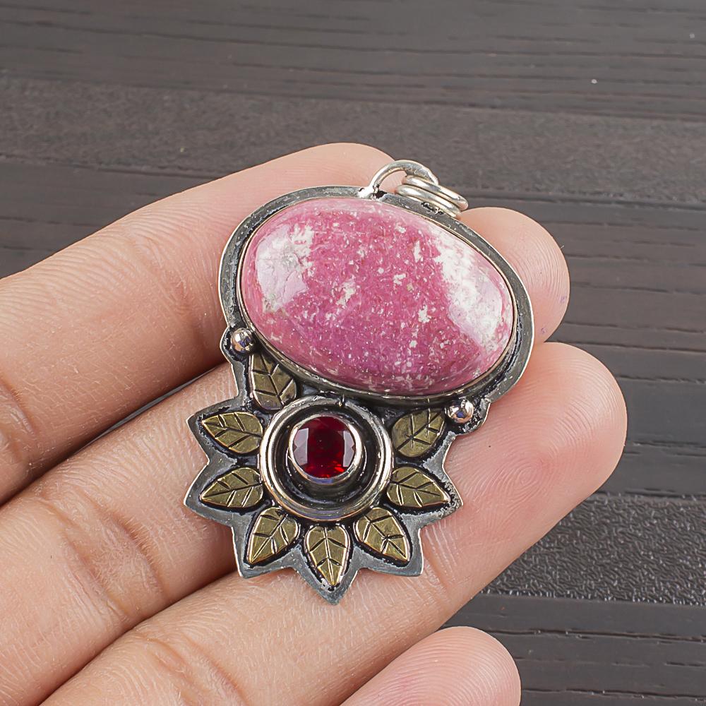 Natural Thulite Gemstone 925 Sterling Silver Jewelry Designer Pendant 1.63" AJP-2143