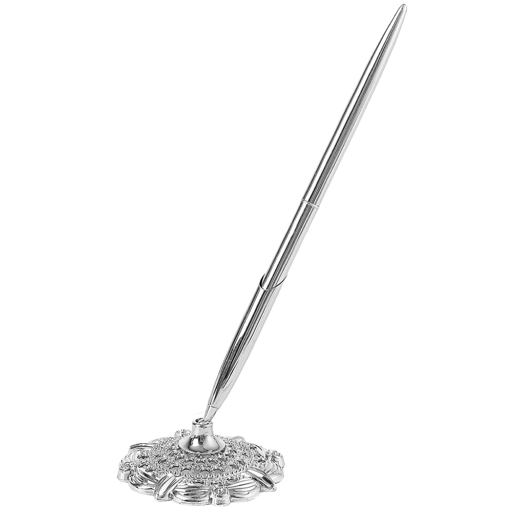 Ailunate Reception Desk Signature Pen with Ballpoint Pen for and Reception Rooms Pen, Pen, Stand, Weddings, Receptions, Hotels, (1 Pen, Silver)