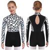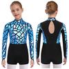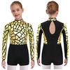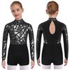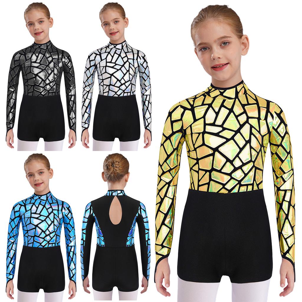 Sparkling Metallic Sequin Jumpsuit for Girls: Mock Neck Long Sleeve Keyhole Back Bodysuit for Gymnastics & Dance Shows