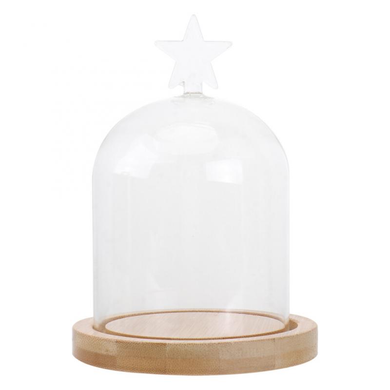 2Stk Trockenblumen-Display-Glasabdeckung, Fünfzackiger Stern, Holzsockel