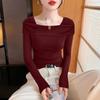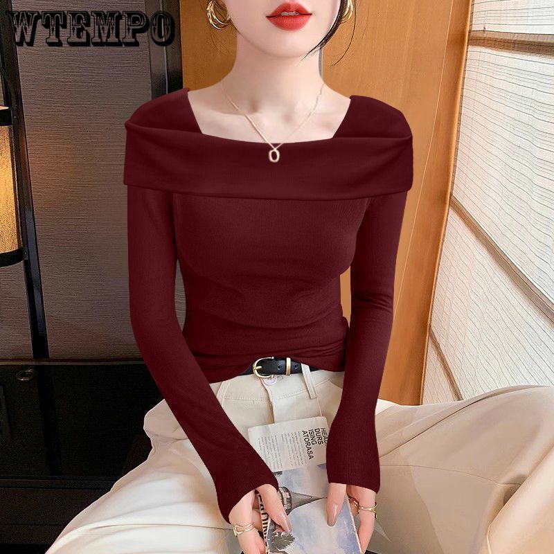 Women's Knitted Top with One Collar Spring and Autumn Design T-shirt Women's Interior Bottom Shirt