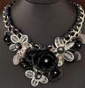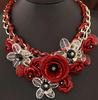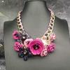 European and American Fashion Necklace: Cotton Rope with Large and Small Flower Pendants, Short Statement Clavicle Design. KTJ