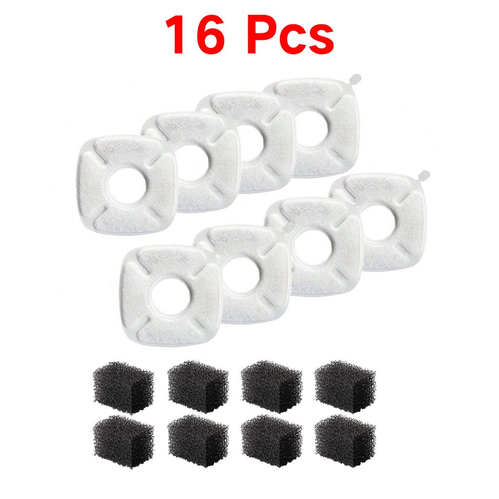 Cat Fountain Replacement Filters for 95oz/2.8L Automatic Pet Fountain, Include 8 Replacement Filters & 8 Pre-Filter Sponges