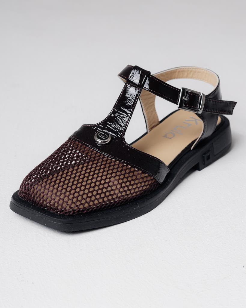Krula 19883 36 Brown Patent Leather Sandals with Mesh