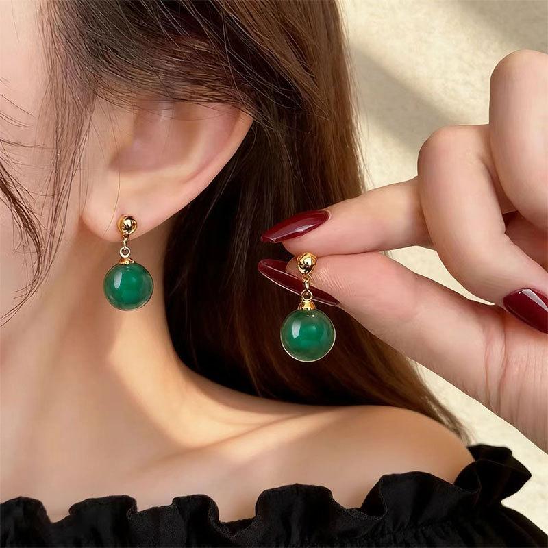 Retro Emerald Earrings Women'S Niche Unique Earrings Earrings Light Luxury Niche High-End Earrings New Chinese Earrings