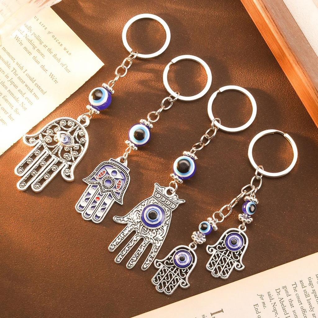 Retro Ethnic Style Fatima Palm Keychain Tribal Style Devil'S Eye Dripping Oil Hollow Pendant