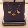 Simple Full Diamond Earrings Necklace Set Retro Love Butterfly Collarbone Chain Ear Hook Women'S Fashion Versatile Jewelry