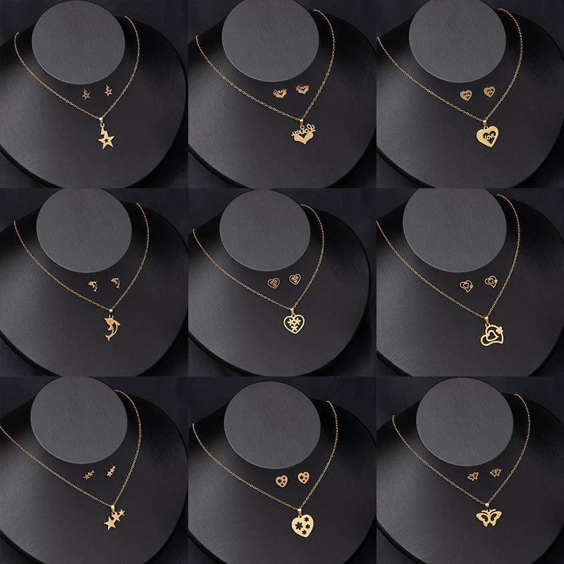 Fashion Hollow Love Glossy Necklace Earrings Set Women'S Niche Design Heart Pendant Earrings Necklace