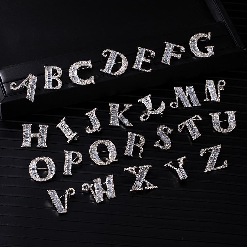 26 English Alphabet Brooches, Men'S And Women'S Suits, Collar Pins, Creative Brooches, Rhinestones, Crystal Anti-Light Pins