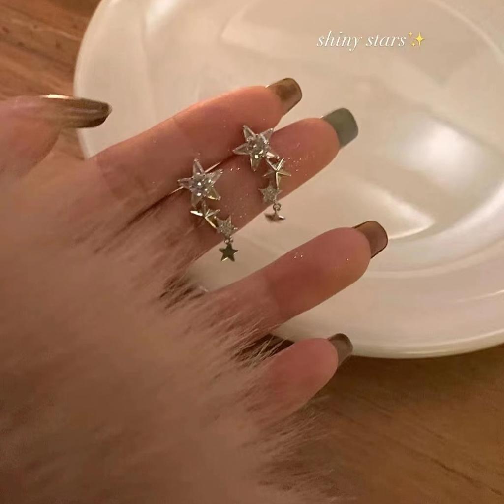 Zircon Star Earrings Women'S Niche Design High-End Stud Earrings Trendy Short Fringed Earrings
