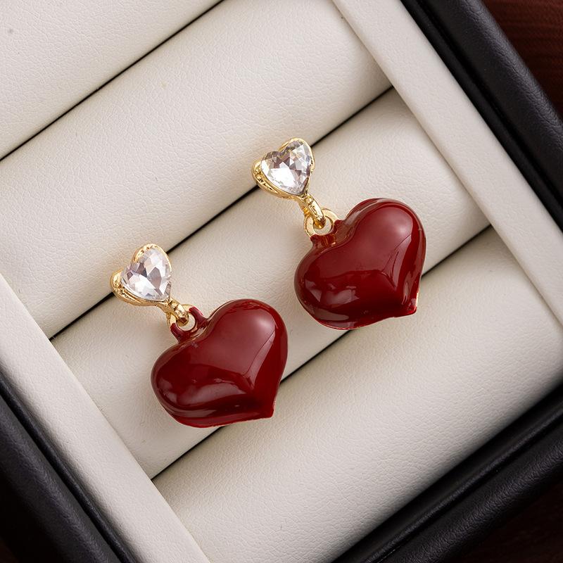 Ankola Red Oil Dripping Love Stud Earrings Retro Hong Kong Style High-End Earrings Women'S New Festive Fashion Earrings