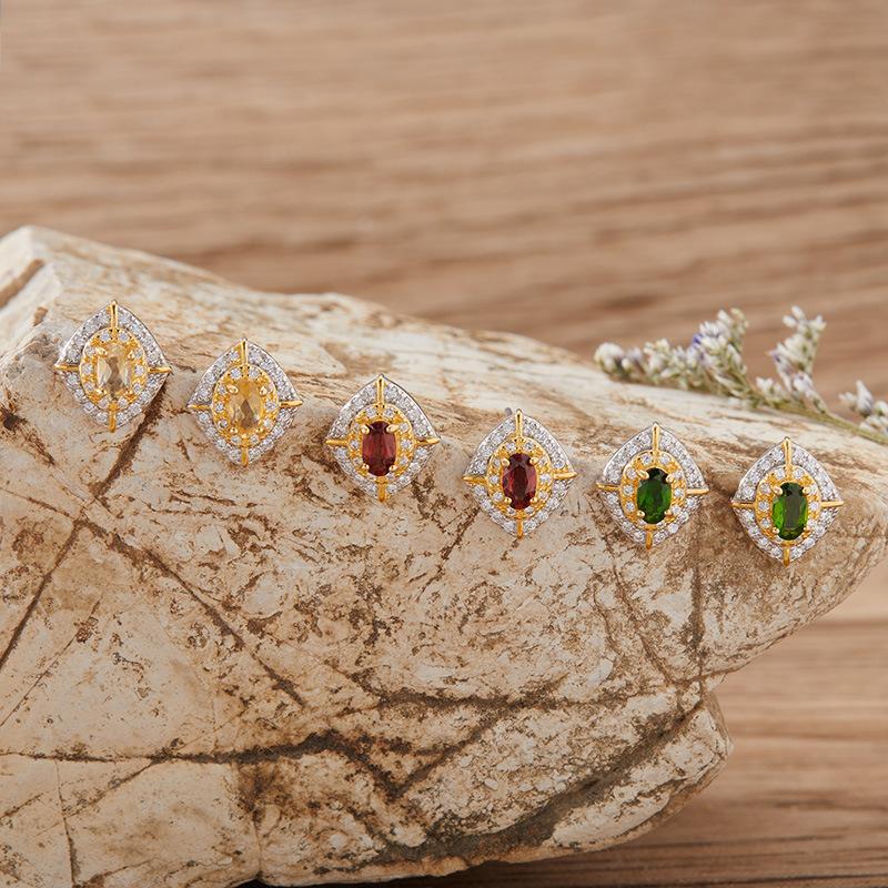 Natural Garnet Tanzanite Diopside Citrine Stud Earrings S925 Sterling Silver Color Separation Earrings