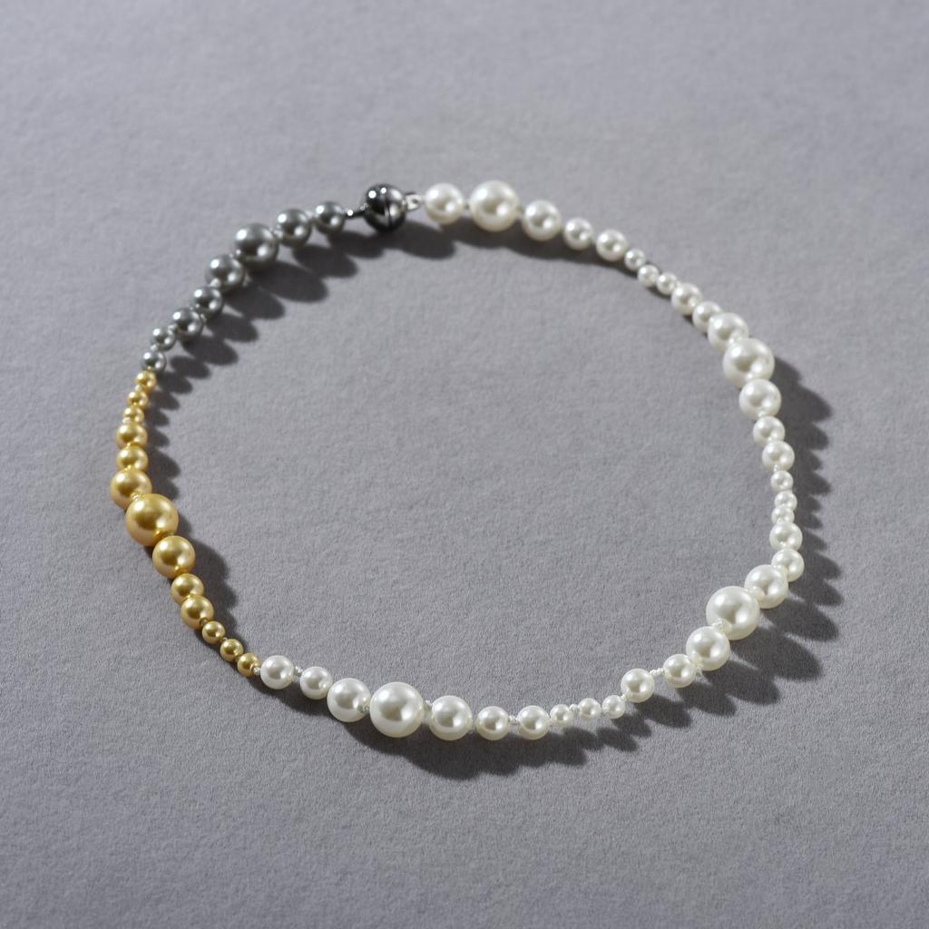 Strong Light Round Size Multi-Color Mixed Color Pearl Collarbone Chain Niche Copper Plated Platinum Magnetic Necklace
