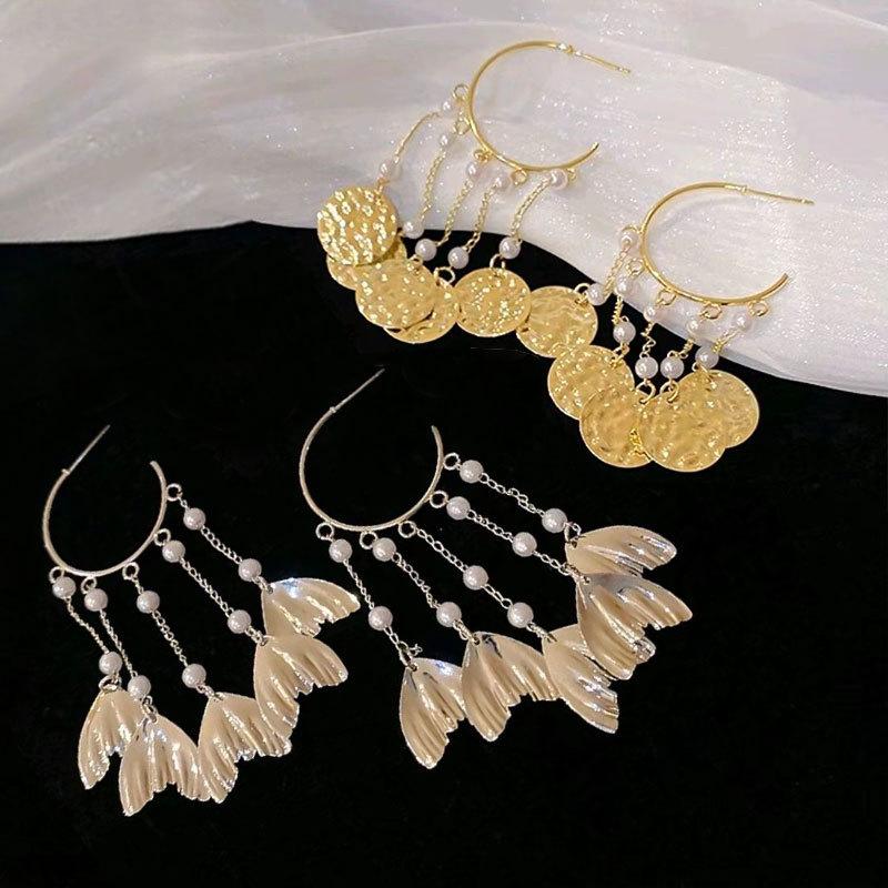 Super Fairy Pearl Fishtail Fringed Earrings, Premium Female Texture Metal Disc Earrings, 925 Silver Needle Jewelry.