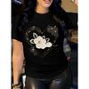 European Size Women's Casual Short-Sleeve T-Shirt - Breathable and Comfortable Heart Floral Print Round Neck, Machine Washable Essential