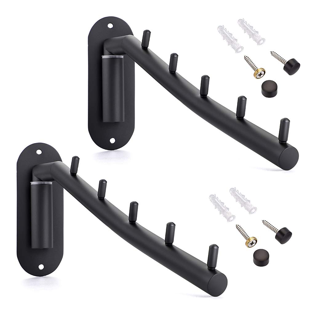 Sumnacon Folding Clothes Wall Stainless Adjustable Suitable for and Black of Wall-Mounted Rack, Hanger, 5-Hook, Steel, 180-Degree Angle, Space-Saving,