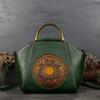 Vintage Polished Totem First Layer Cowhide Women's Bag Handmade Embossed Handbag Genuine Leather Shoulder Messenger Bag