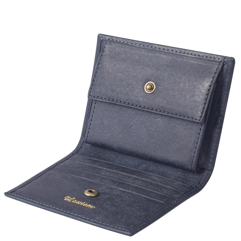 Lautem Men's Bifold Wallet, Small, Slim, Compact, and Women's, Made with Italian Pueblo Leather. Navy.