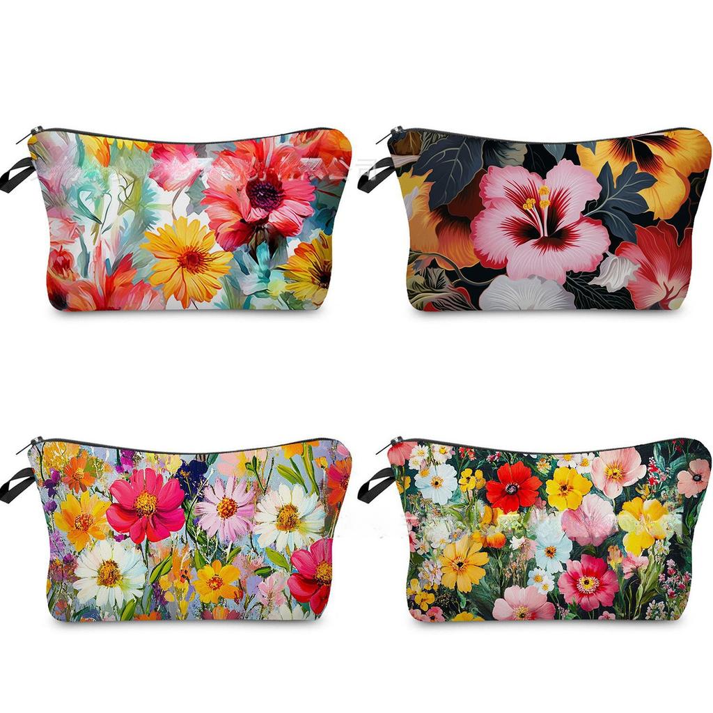 Women Floral Print Cosmetic Bag Toiletries Organize Travel Storage Case 6887 KTB