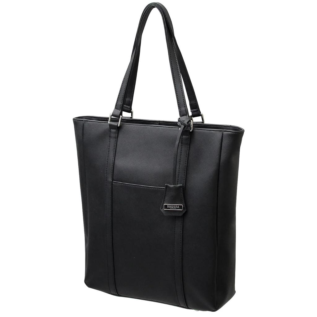 [Register] Cowhide Leather Vertical Tote Bag with Pocket, Zipper, A4 Size Storage, Bottom Studs, Water-Repellent, Lightweight, 7002, Black