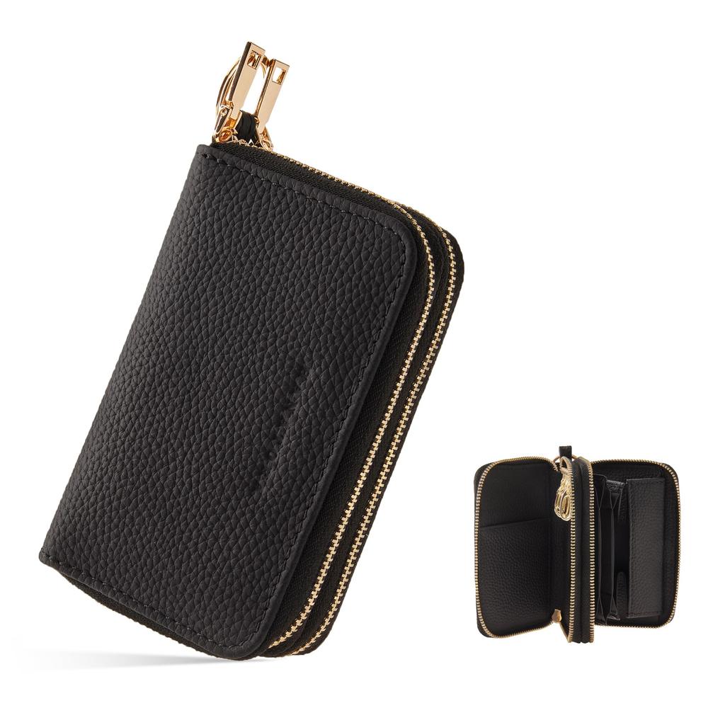HANATORA Genuine Leather Zippered Smart Key Case with Key Ring and Coin Purse, Car Keys, Cards, and Mini Wallet Storage Pockets for Coins, Bills,