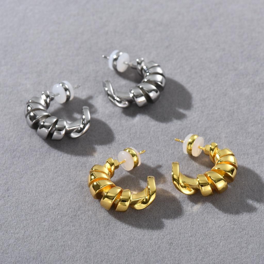 Premium Metal Copper Plated 18K Real Gold Irregular Twisted Lines S925 Silver Needle Earrings Personalized Trendy Earrings