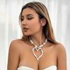 Exaggerated Lava Irregular Love Pendant Necklace, Simple Round Bead Mixed Color Imitation Pearl Necklace