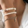Simple Bow Pearl Beaded Bracelet Set, Fashionable Stacked Metal Elbow Jewelry Women