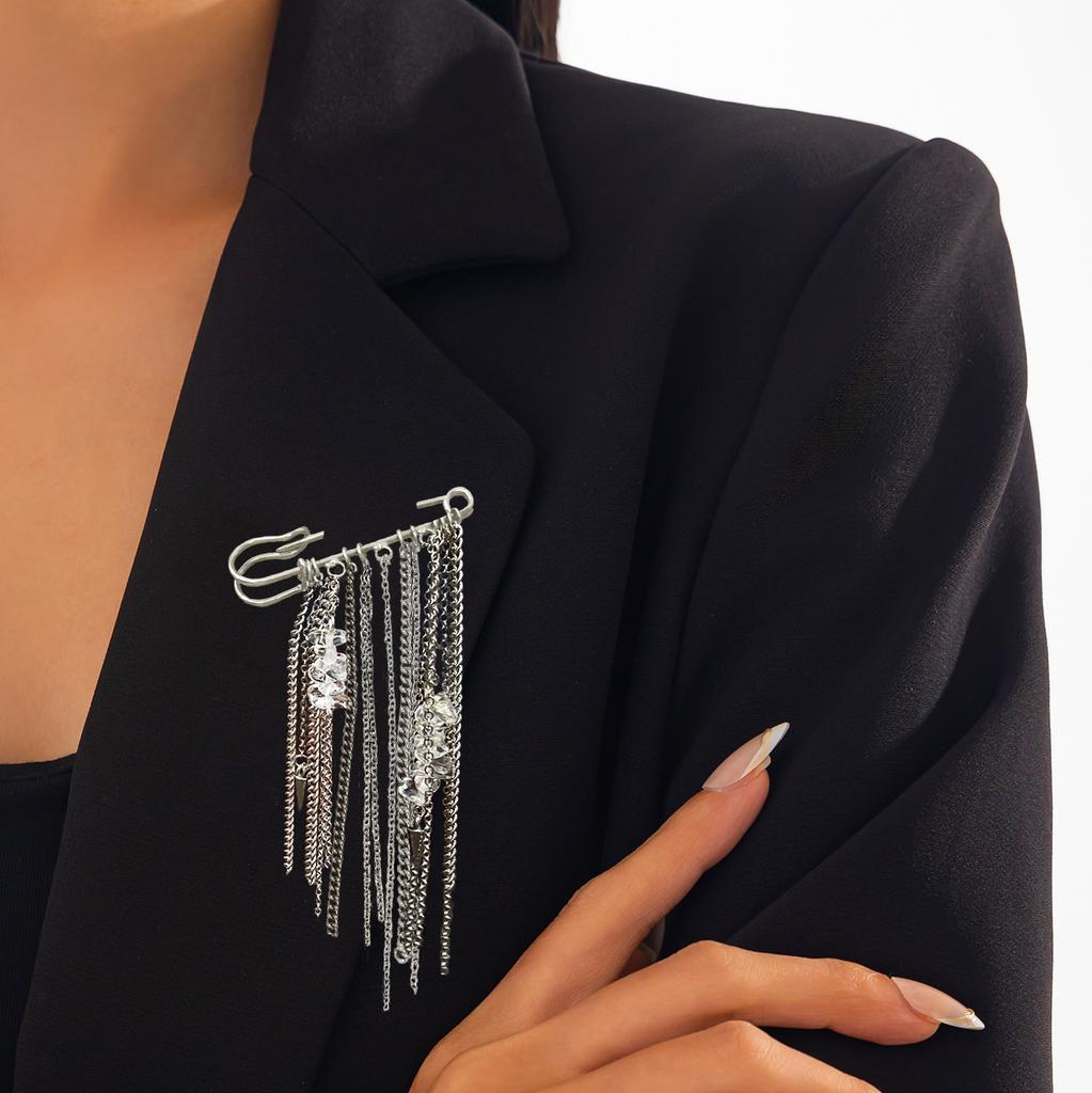 Metal Chain Fringed Pin Brooch, Design Gravel Rivet Pants Anklet Chain Shortened Decoration