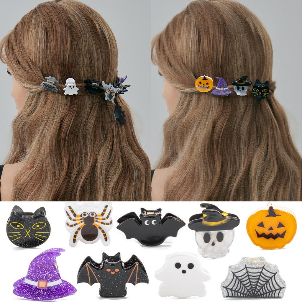 Creative Halloween Bat Pumpkin Spider Small Scratch Clip, Funny Personality Ghost Black Cat Bangs Clip