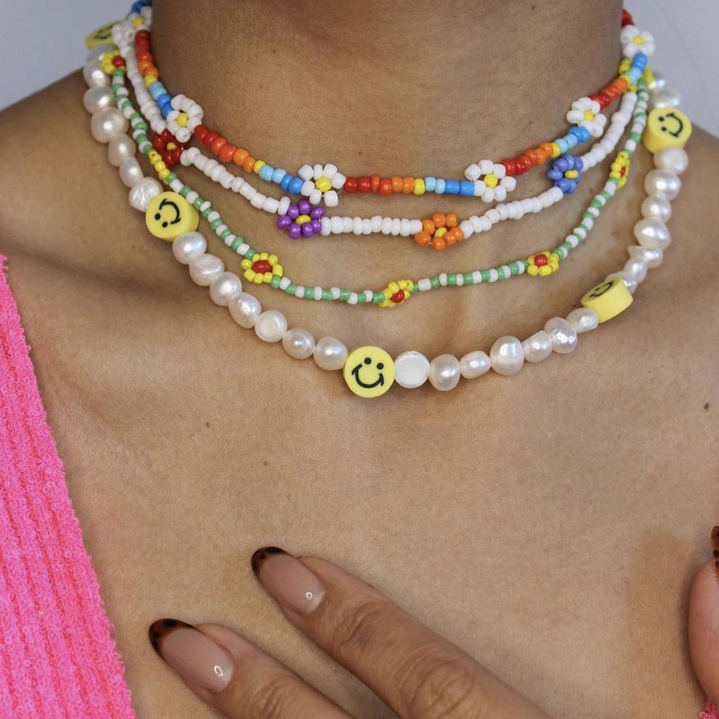 Bohemian Holiday Style Colored Rice Beads Beaded Necklace Female, Little Daisy Flower Collarbone Necklace