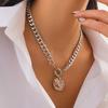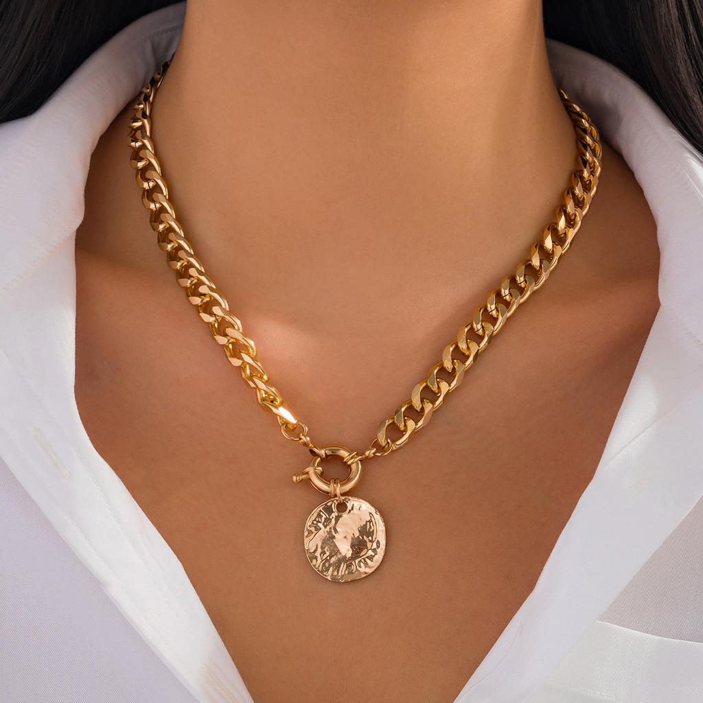 Hip-Hop Metal Disc Pendant Necklace Female, Niche Spring Buckle Single-Layer Chain Collarbone Necklace