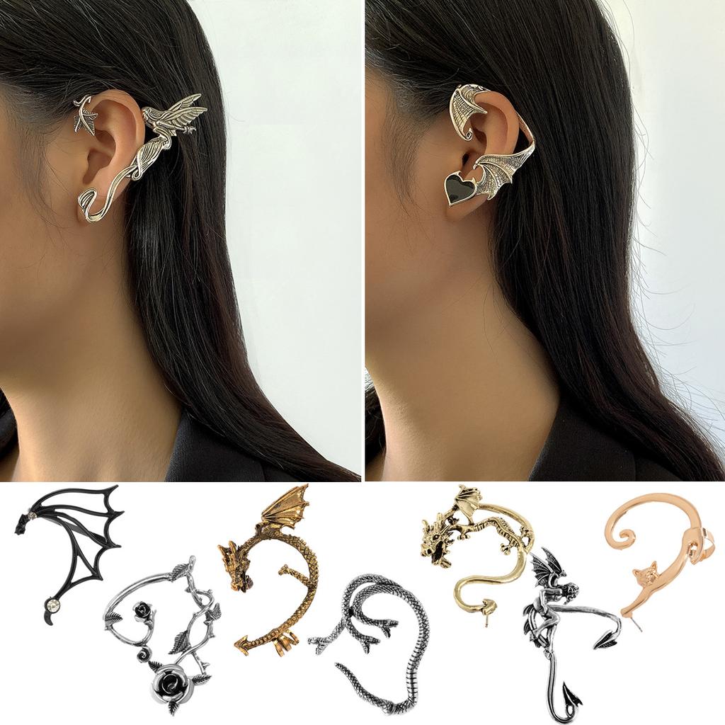 Sweet And Cool Flower Elf Earrings Female, Personalized Creative Snake Dragon Animal Silhouette Stud Earrings