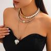 Sweet And Cool Style Love-Shaped Pendant Necklace, Design Imitation Pearl Beads Stacked Collarbone Necklace