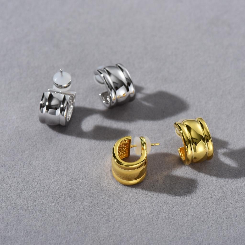 Minimalist Metal Cold Wind C-Shaped S925 Silver Needle Stud Earrings Irregular Circle Earrings Unique Personality Earrings