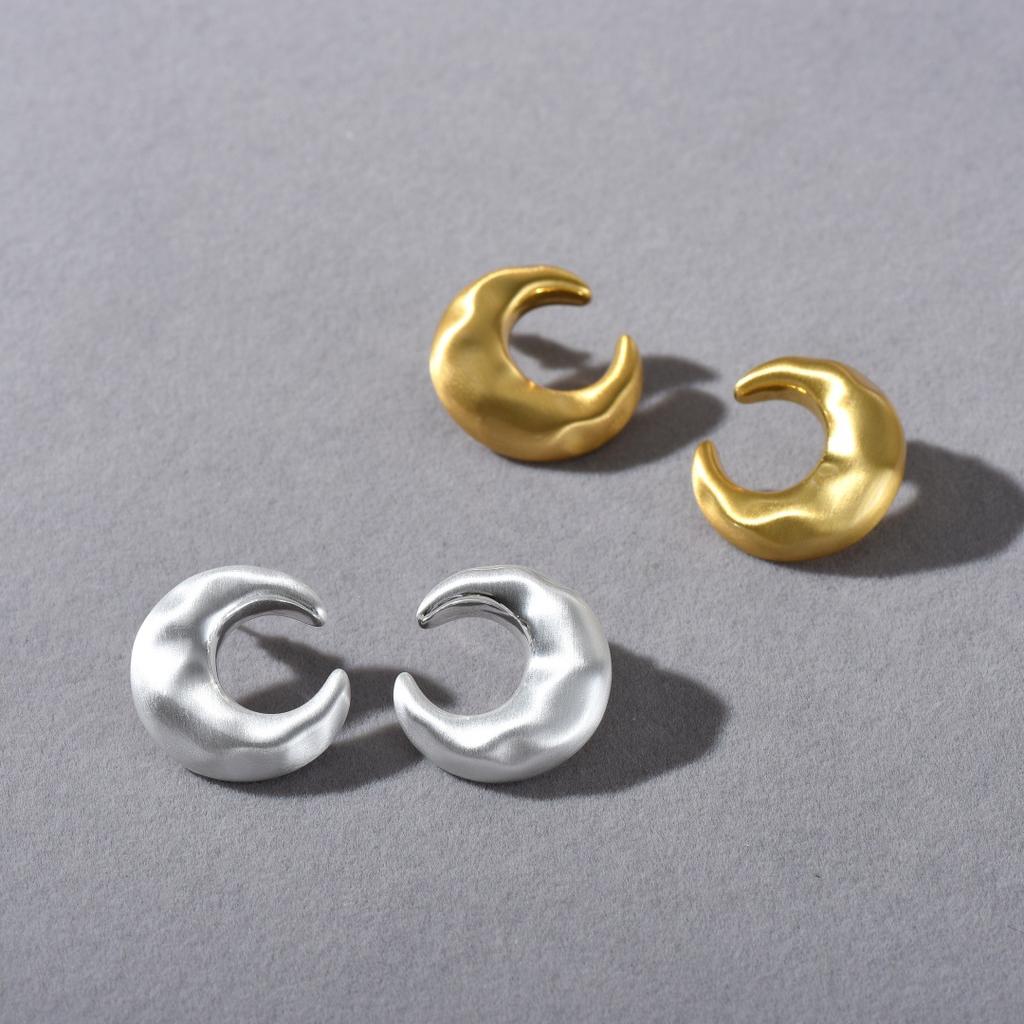 Simple And Exquisite Gold And Silver Crescent Moon Handmade Brushed S925 Silver Needle Stud Earrings Niche Fashion High Sense Earrings Women