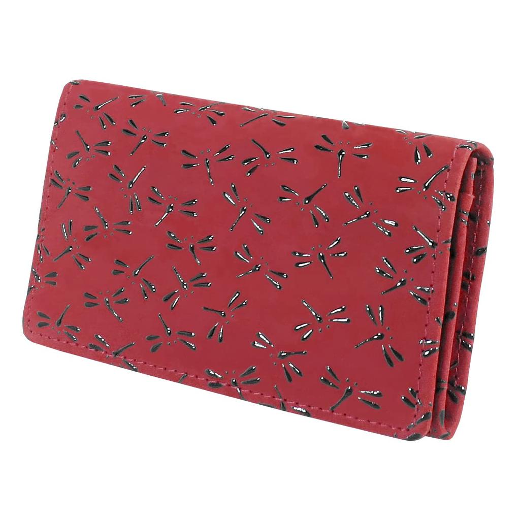 Indenya Inden Business Card Case, Large Capacity, Deerskin Leather, Red with Black Lacquer, Dragonfly Pattern, 2501-03-008