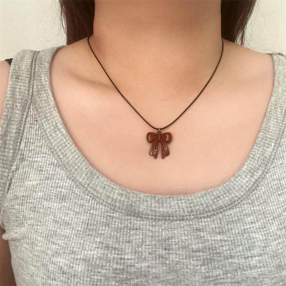 Cool Bowknot Pendant Necklace Sweet Clavicle Chain Creative Leather Rope Necklace Y2K Party