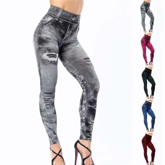 False denim print design for sports pants will make you get lots of compliments from your friends. Ergonomic 3D cutting design makes you feel comfortable and look slim.