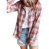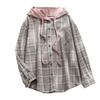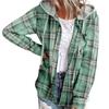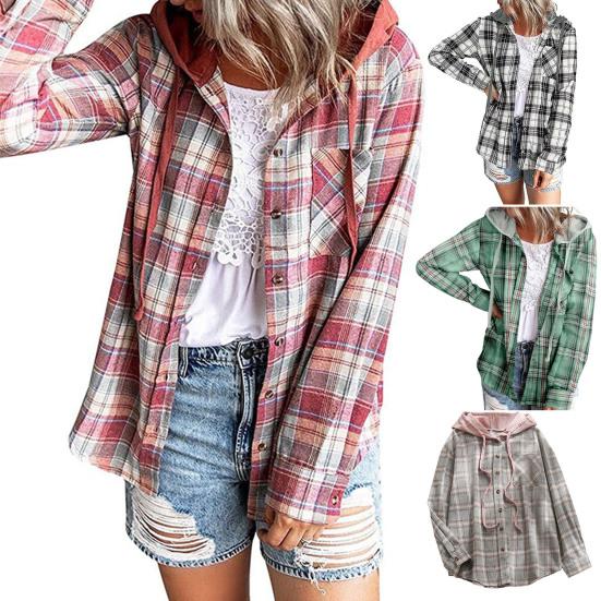 Women Coat Plaid Single-breasted Hooded Pocket Spring Shirt for Daily Wear