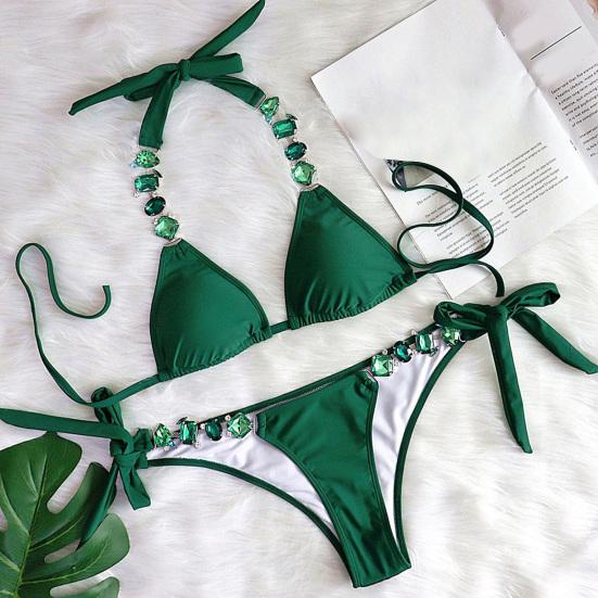 Featuring shiny rhinestones and chain decorations, this bikini set is cool, trendy and popular, it gives you more glamour and attention-grabbing.