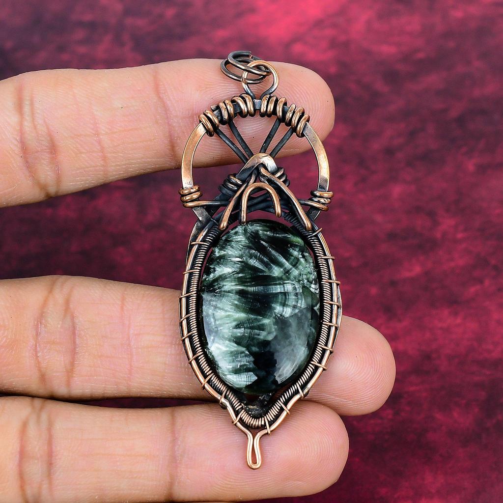 Seraphinite Pendant Handmade Copper Wire Wrapped Pendant Natural Gemstone Jewelry